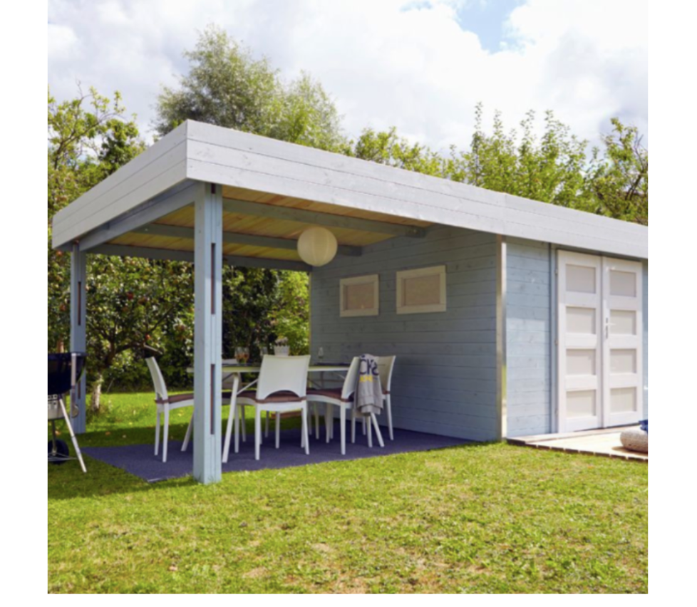 Abri de jardin toit plat en bois avec auvent – Design moderne et pratique