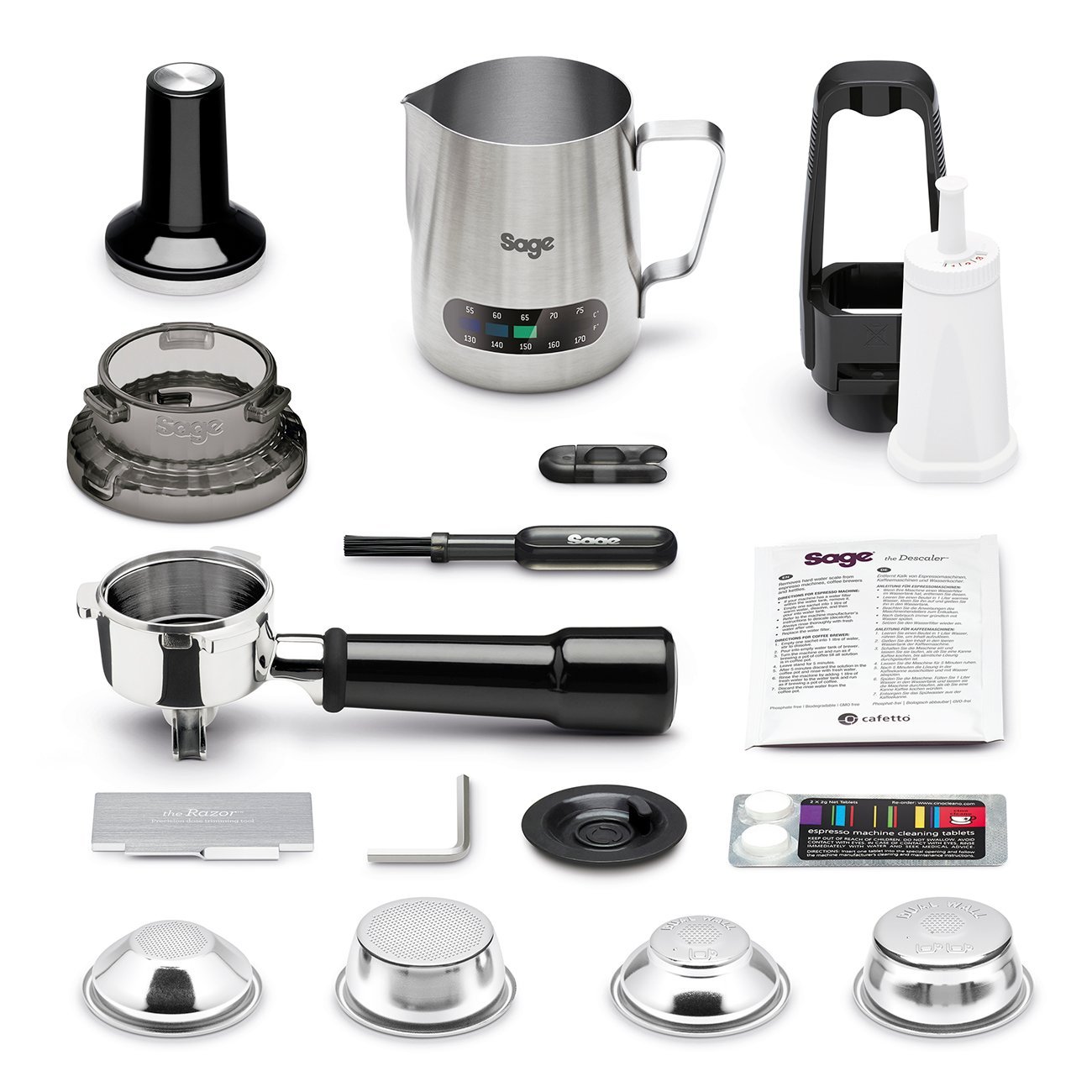 Accessoires Portafilter, tamper, melkkan (modelafhankelijk)