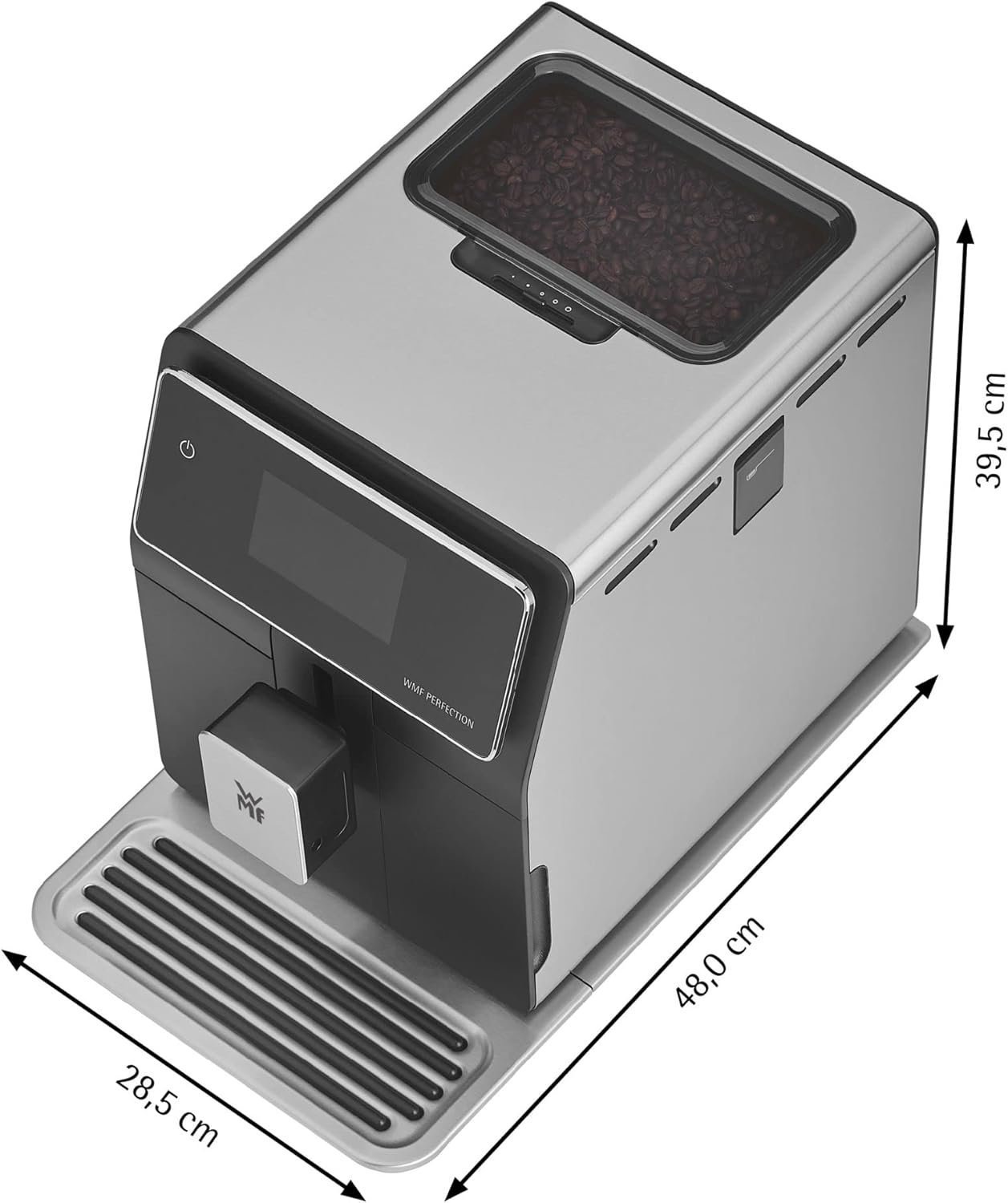 De WMF Perfection 840 is een premium volautomatische koffiemachine ontworpen voor veeleisende koffieliefhebbers. Met zijn stijlvolle Duitse design, hoogwaardige materialen en intuïtieve bediening levert deze machine koffiespecialiteiten van barista-kwaliteit. Dankzij het dubbele bonenreservoir en het geavanceerde melkopschuimsysteem kunt u met één druk op de knop genieten van een brede variatie aan warme dranken. Het touchscreen, de automatische reinigingsprogramma’s en de stille werking maken het gebruik extra comfortabel.