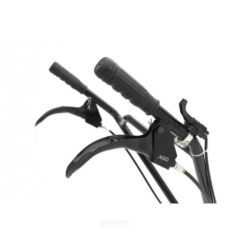 Le guidon réglable en hauteur est équipé de leviers pour activer les lames, démarrer l’arbre principal (pour la propulsion) et actionner l’accélérateur.