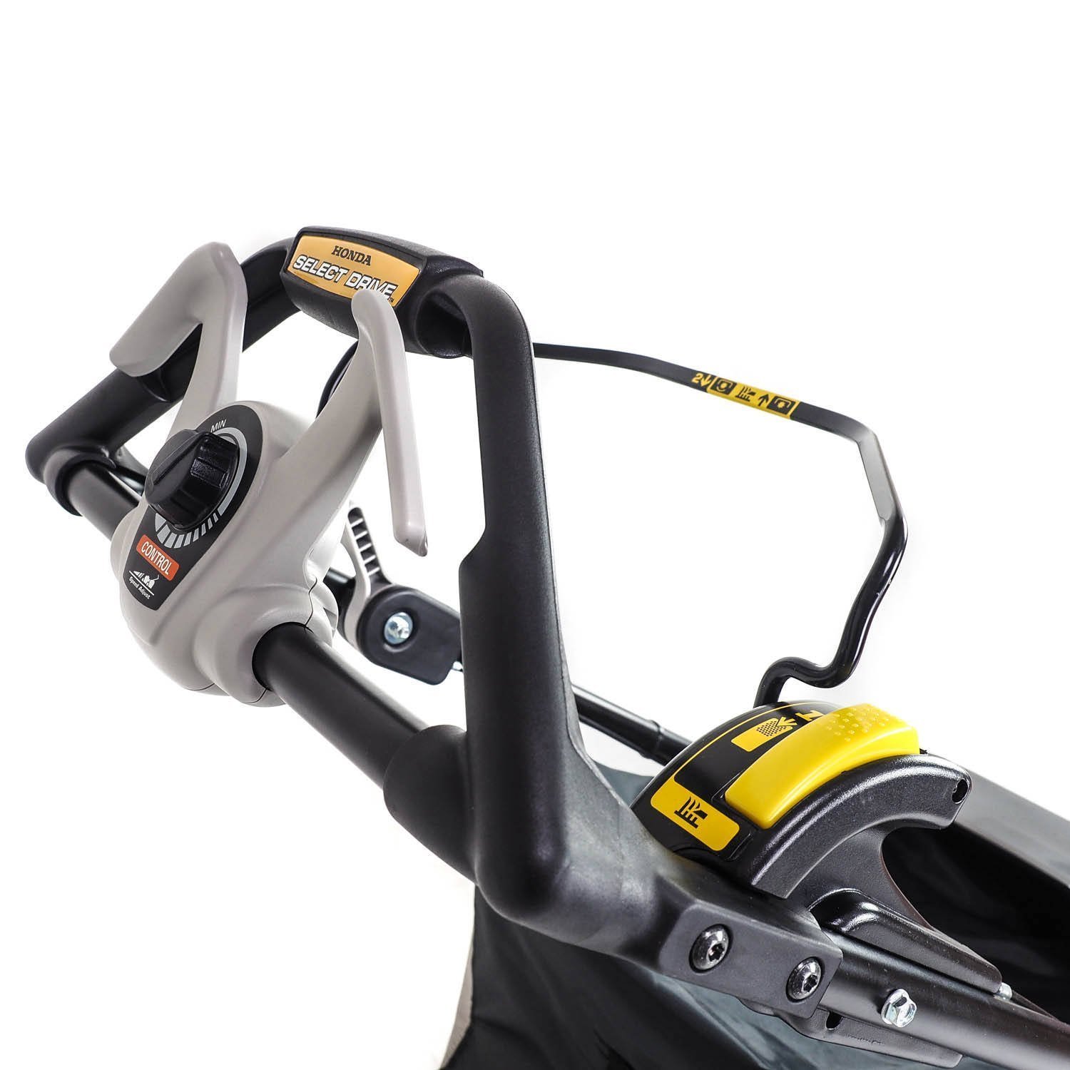| Beim Honda Select Drive wird durch das nach vorn Drücken des Hebels der Radantrieb aktiviert. Die Geschwindigkeit wird über den Drehknopf eingestellt und sorgt für eine konstant gleiche Geschwindigkeit. | |