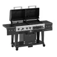 La partie gauche de l’appareil accueille un barbecue à gaz composé de 3 brûleurs en acier inoxydable (puissance de 8,79 kW). Vous pourrez cuire avec une grande précision tous les mets possibles : légumes, viandes, poissons, etc. Vous êtes pressés ou vous n’avez pas beaucoup d’aliments à cuire ? Alors profitez de ce grill au gaz qui sera prêt en quelques minutes.