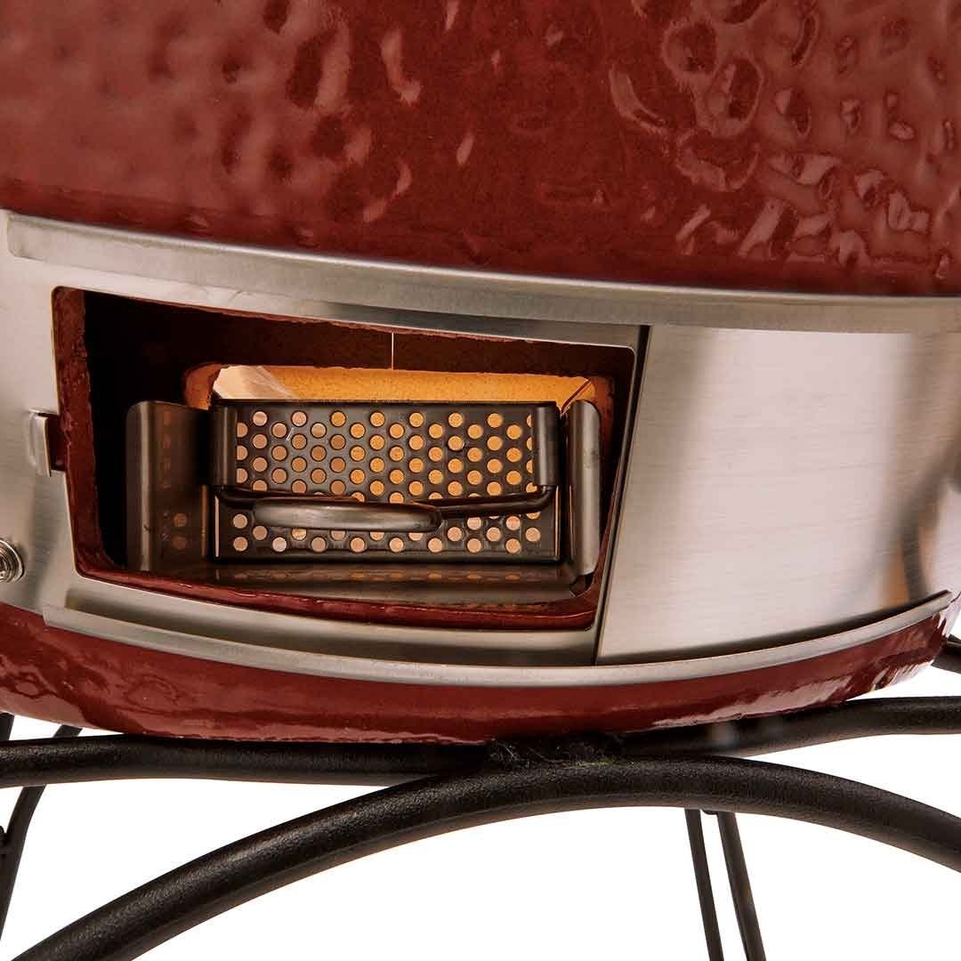 Kamado Joe Kamado Klassiek ontwikkeld als veelzijdig keramisch kookinstrument dat eeuwenoude Japanse kamado-traditie combineert met moderne technologie voor ongeëvenaarde kookervaring, vervaardigd uit hittebestendig keramiek dat warmte vasthoudt en gelijkmatig verdeelt over volledige kookruimte waardoor vlees, vis, groenten en brood altijd sappig en perfect gegaard worden, voorzien van flexibel kookrooster systeem dat meerdere niveaus en verschillende kookstijlen tegelijk mogelijk maakt zodat langzaam gegaard pulled pork naast krokante pizza of gegrilde groenten kan worden bereid, robuuste gietijzeren vuurbox ontworpen voor langdurige stabiliteit en duurzaamheid zodat hoge temperaturen probleemloos bereikt en behouden kunnen worden, gepatenteerde luchtregelaar die nauwkeurige beheersing van luchttoevoer en warmte geeft ongeacht weersomstandigheden waardoor koken in zomerzon of winterkou altijd consistente resultaten levert, ruime kookcapaciteit geschikt voor kleine familiemaaltijden maar ook voor uitgebreide feesten met vrienden en buren, eenvoudig schoonmaaksysteem met uittrekbare aslade dat onderhoud snel en praktisch maakt zodat meer tijd overblijft voor genieten van koken en samenzijn, stevige zijplanken die extra werkruimte creëren voor kruiden, marinades en kookgereedschap waardoor koken efficiënt en overzichtelijk verloopt, stabiel onderstel met duurzame wielen voor gemakkelijk verplaatsen in tuin, terras of buitenkeuken zonder concessies aan stabiliteit tijdens gebruik, iconische rode afwerking die niet alleen functionele waarde heeft maar ook visueel middelpunt vormt van elke buitenruimte en een premium uitstraling geeft, uitgebreide reeks accessoires beschikbaar zoals pizzasteen, gietijzeren roosters, rotisserie en grillverhogers die kookmogelijkheden vrijwel onbeperkt maken, innovatieve afsluitsystemen die luchtcirculatie optimaal regelen en hitteverlies minimaliseren waardoor houtskool langer brandt en energieverbruik lager blijft, combinatie van authentieke houtskoolaroma met high-end constructie waardoor elke maaltijd verandert in culinaire belevenis met diepe rooksmaak en professionele presentatie, ideaal voor barbecuefanaten die ultieme controle zoeken over bereidingswijze en smaakbeleving, geschikt voor slow cooking bij lage temperatuur over vele uren maar ook voor direct grillen op extreem hoge temperatuur voor perfecte steak met krokante korst en sappige kern, bewezen betrouwbaarheid en vakmanschap die jarenlang intensief gebruik doorstaat zonder in te boeten aan prestaties of uitstraling, perfecte keuze voor liefhebbers van buitenkoken die compromisloze kwaliteit eisen en graag investeren in apparatuur die zowel functioneel als esthetisch topniveau vertegenwoordigt, Kamado Joe Kamado Klassiek staat symbool voor samensmelting van traditie, innovatie, smaak en passie voor koken waardoor buitenkoken verandert van simpele maaltijd in complete lifestyle-ervaring die telkens opnieuw indruk maakt op gasten en voldoening schenkt aan iedere gebruiker.