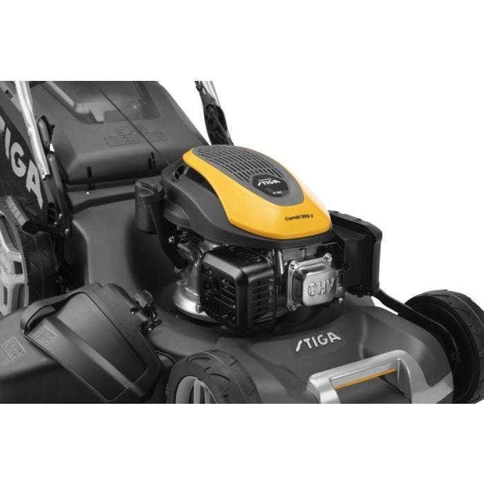 La Stiga Combi 955e V est une tondeuse sans fil autopropulsée conçue pour les pelouses de taille moyenne à grande, jusqu’à environ 1000 m². Elle combine puissance, confort et simplicité d’usage. Le moteur brushless (sans balais) associé à un système d’alimentation 48 V offre une tonte efficace avec peu d’entretien. La largeur de coupe de 53 cm permet de couvrir rapidement le terrain, tandis que le bac collecteur de 70 L assure moins de vidanges fréquentes. Vous avez le choix entre quatre modes de coupe : ramassage, mulching, éjection arrière ou latérale. La hauteur de coupe se règle de manière centrale sur cinq positions (environ 25 à 80 mm). Le guidon est ergonomique, réglable, pliable, ce qui facilite la manœuvre et le stockage.