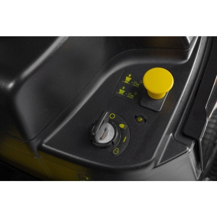 Cette polyvalence supérieure est due à la combinaison d’une tondeuse trois en un – ramassage, broyer, éjection arrière – avec sept hauteurs de coupe préréglées et une transmission manuelle à plusieurs vitesses. Cela lui confère une grande adaptabilité et garantit que tu n’auras aucun mal à faire face aux conditions variables de l’herbe et aux différents types de terrain. L’AT4 84 A est équipée d’un moteur monocylindre STIGA ST350 de 352 cm3 qui fournit aux roues arrière et aux lames une puissance considérable de 5,8 kW. Une largeur de coupe moyenne de 84 cm offre un compromis parfait entre la capacité de travail sur de grandes surfaces et la maniabilité dans les espaces confinés, tandis que l’engagement électromagnétique permet d’activer les lames rapidement et sans effort. Afin d’éviter que les coins du plateau de coupe ne marquent les surfaces délicates lors des manœuvres en pente, l’AT4 84 A a été équipée d’un jeu de roues de plateau anti-scalp. Tu bénéficieras également de puissants phares qui te permettront de continuer à tondre lorsque la lumière ambiante faiblit, et d’un pare-chocs avant robuste qui te rassurera en matière de protection contre les chocs à l’avant de la machine.