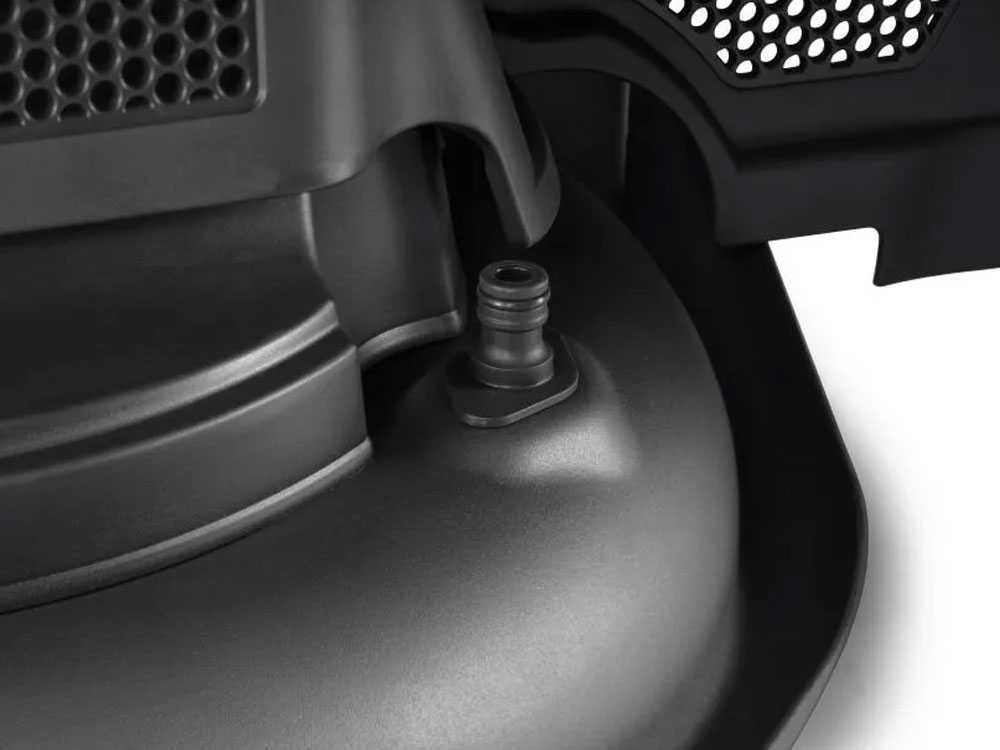 - Le système de ramassage guidé situé des deux côtés du plateau de coupe permet une collecte optimale de l’herbe sur l’ensemble de la largeur de coupe. Il conduit l’herbe vers les lames de la tondeuse.